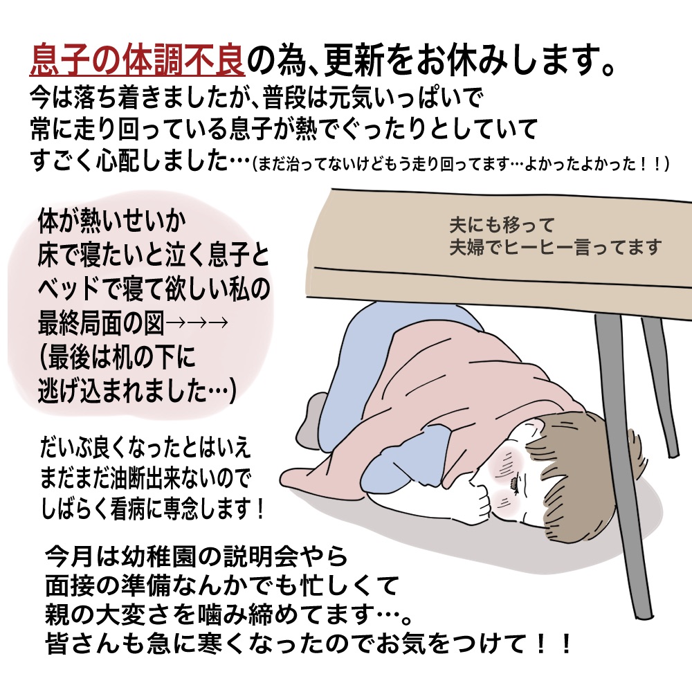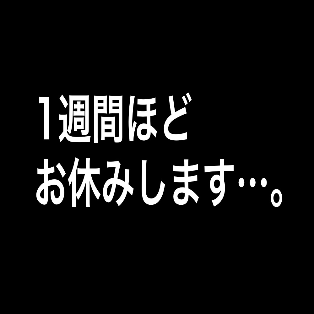 この前お休みした時に「どうしたの?」っていうDMもあったので《知りたい人の為》のお知らせです。1週間って言うてるけど場合よっては短くなったり延びたりするとも思います。それでも続きを待って頂けると嬉しいです。※DMへの返信はしばらく「いいね」だけになるかもしれません…。よろしくお願いします!!