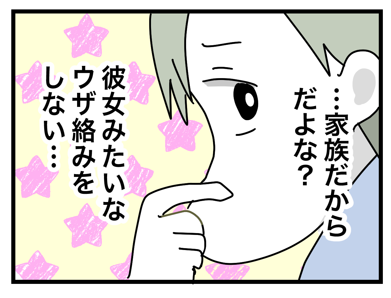 どうして「家族になってないから」「家族になれば」なんて考えに行き着くのか解らない
