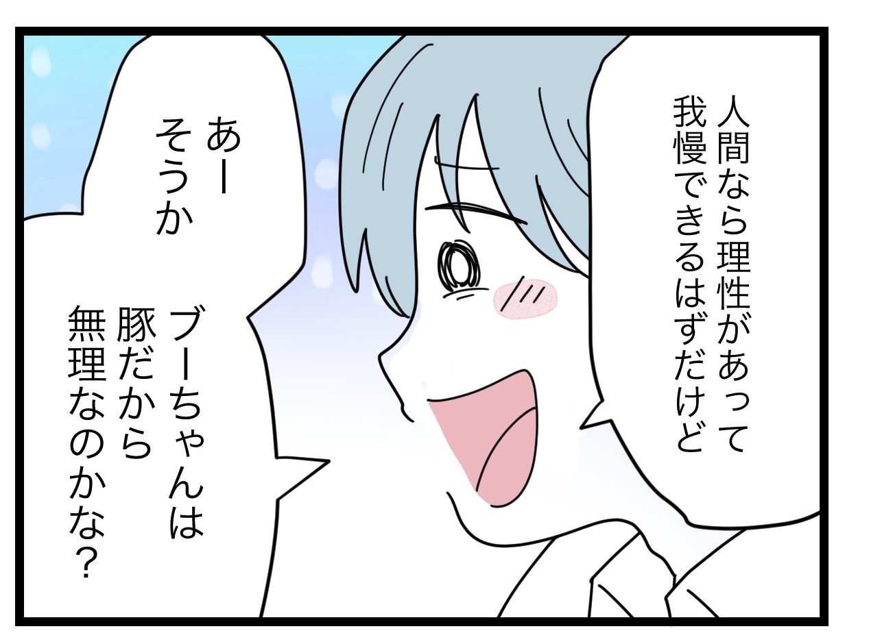 思うんだけど、ブタさんてそんなに太ってるかなぁ。ブタさんに対して侮辱してるようにも感じる…。